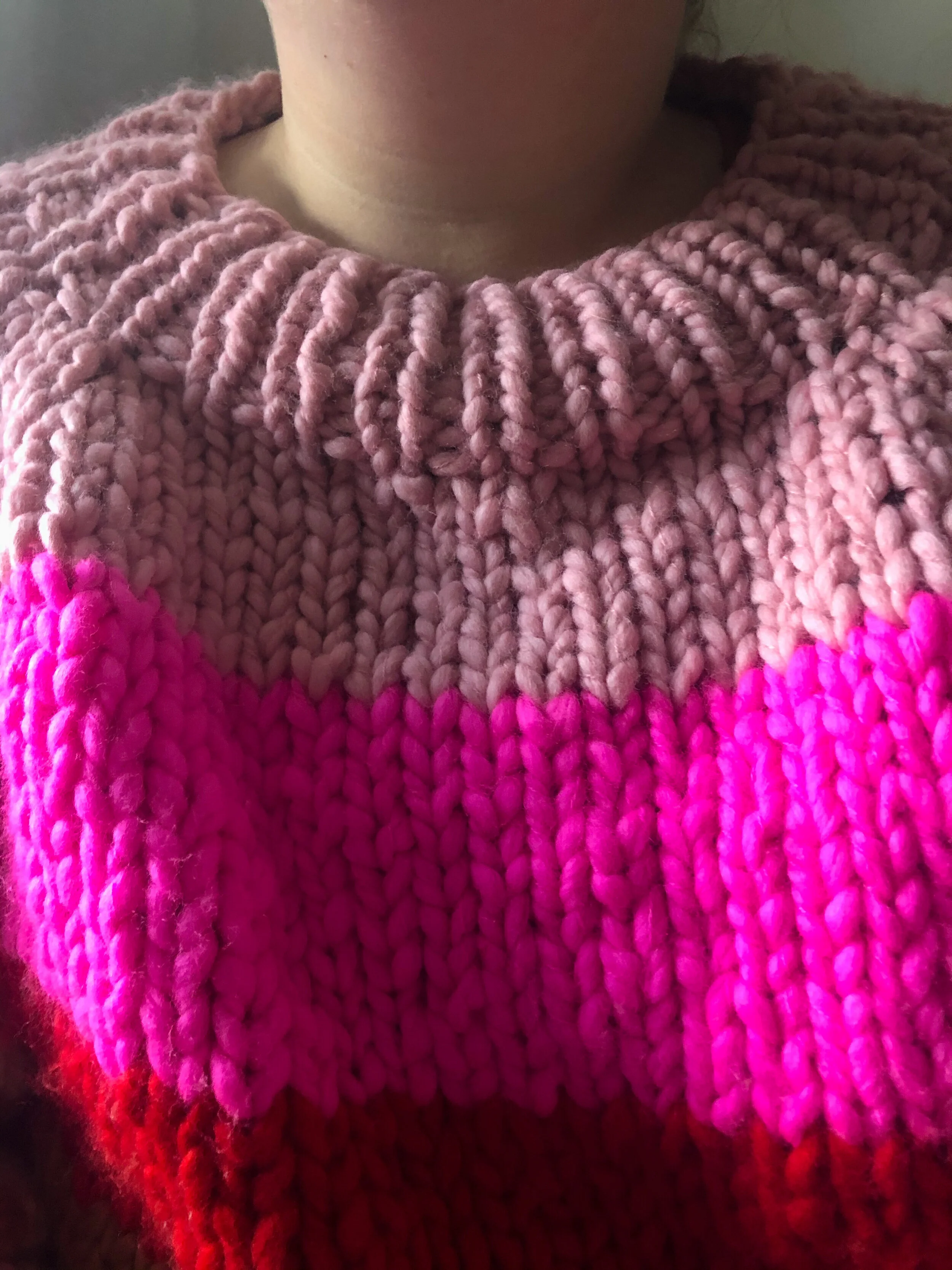 I knit my first sweater! I’ve had it on my yearly goal list for a few years now and finally decided to make my own dreams come true. In a moment of deep sadness and desperate need for something to do with my hands, I splurged and purchased the kit.